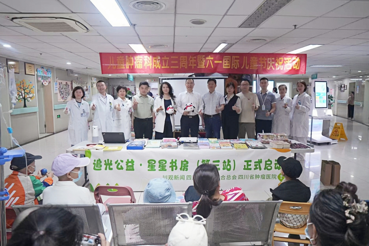 5月27日,由川观新闻联合四川省慈善联合总会及我院共同发起的“星星书房-儿童爱心阅读空间共建计划”第三站,在我院儿童肿瘤科病房揭牌并投入使用。本次活动得到了社会各界大力支持,数百名热心读者参与共建,在儿童节前为我院住院治疗的孩子们送上了一份特别的节日礼物。