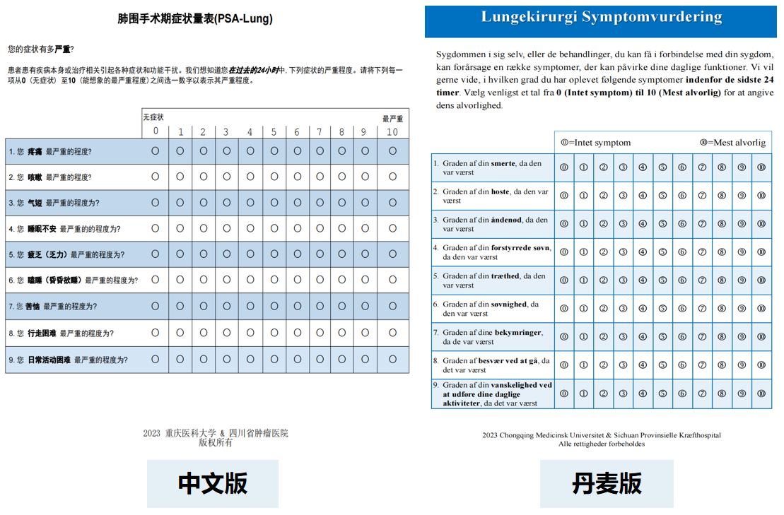 近日,由胸外科李强教授团队与石丘玲教授团队(CN-PRO团队)共同研发的《肺围手术期症状量表》与丹麦哥本哈根大学医院正式签署了国际版权协议,标志着我国自主研发的患者报告结局(PRO)测量工具首次进入国际主流医疗体系。