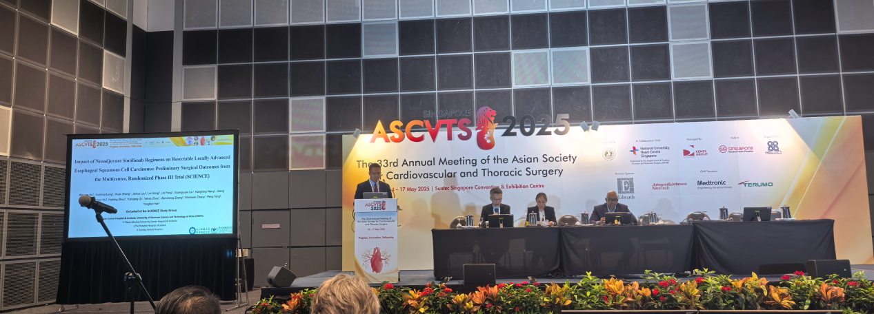 5月14日-17日,第33届亚洲胸心外科年会(ASCVTS 2025)在新加坡顺利召开。胸外科一项研究成果入选大会口头报告。